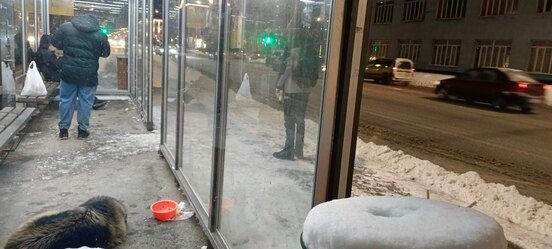 Остановка обогреваемая, туда прибились две собаки. Сердобольные граждане кормят обоих, и понятно, что теперь псы оттуда не уйдут. В комментариях к посту в городском паблике все хвалят тех, кто кормит, и ругают того, кто сфотографировал и выложил (потому что «теперь точно приедет ветконтроль и усыпит»).
