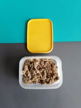 Получается огромная кастрюля чечевицы — половину я раскладываю по контейнерам и замораживаю. На фото порция, которую я только что достала из морозильника.