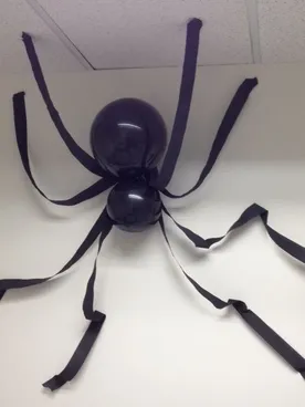 Те же самые ленты, что пошли на гирлянду, и два шарика. А, ну и стремянка!
