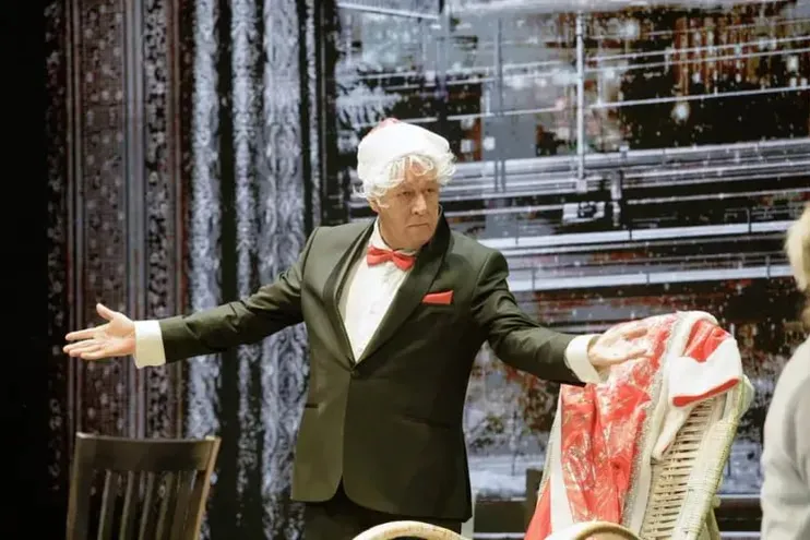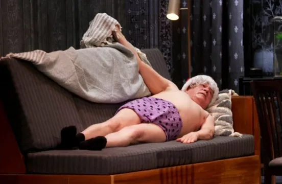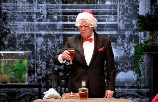 А главное что мы видим на сцене? Судя по кадрам, Ефремов в своем старом амплуа смешного алкаша, которое прежде и довело его до цугундера. Снова хлещет на сцене бутафорский (хочется верить) коньяк и валяется с голым пузом, что ваш сосед дядя Вася. Вот такая у нас культура!