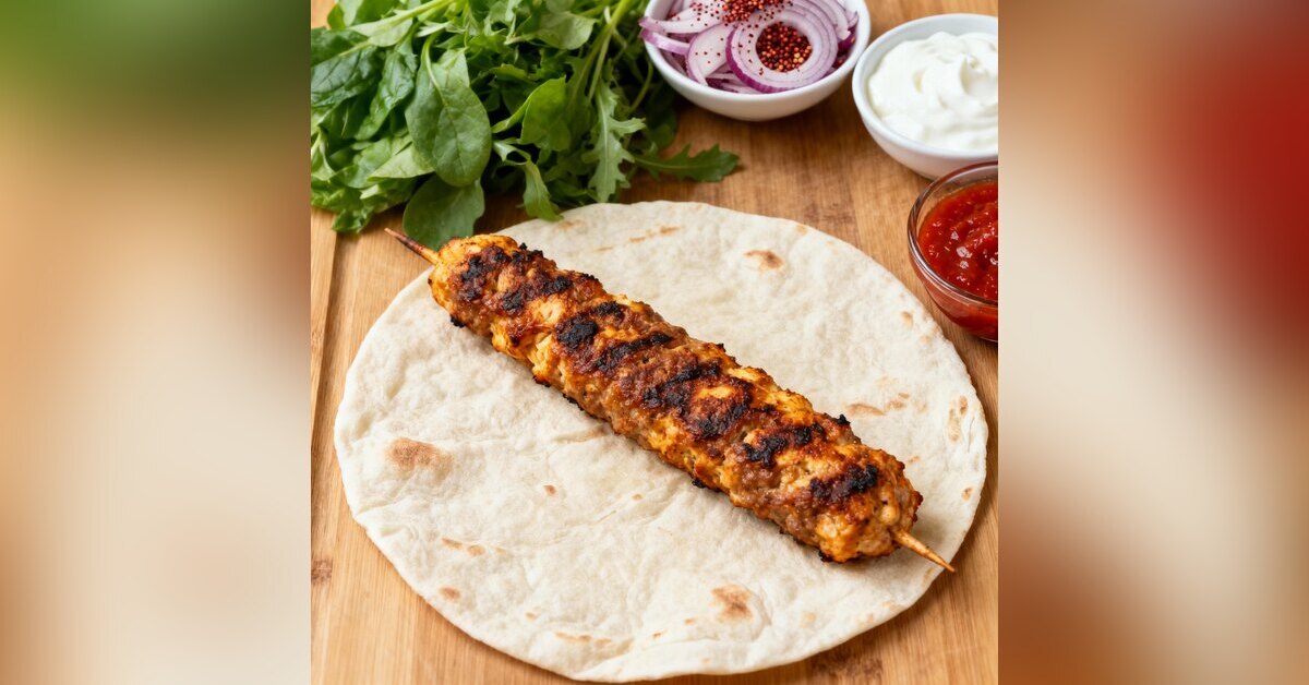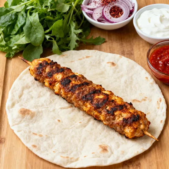 На лепешку сверху разместите готовые куриные люля-кебаб.