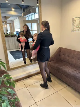 Впервые я со своей малышкой вырвалась в люди... точнее в ресторан) давно я не делала Мейк, не одевалась. Но вот мой образ для выхода в кафе. Комбинезон с ботинками. Моя малышка в платьишке и розовых колготочках