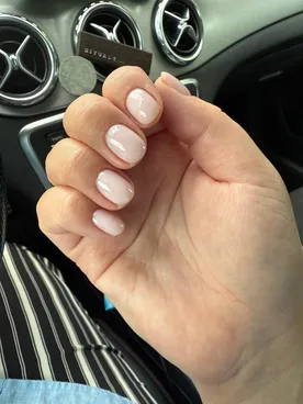 Следом я на пару недель вернулась к любимому нюду. Мастер предложила попробовать новый молочный камуфляж с перламутровым отливом, а я просто не смогла отказаться от такой красоты и нежности.