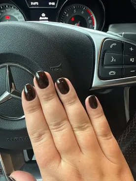 Ну а пару дней назад я окончательно сдалась перед влиянием осени. Вот результат: маникюр в богатом темно-коричневом цвете горячего шоколада. Ощущение, что этот маникюр даже дополнительно согревает меня в особенно пасмурные дни.