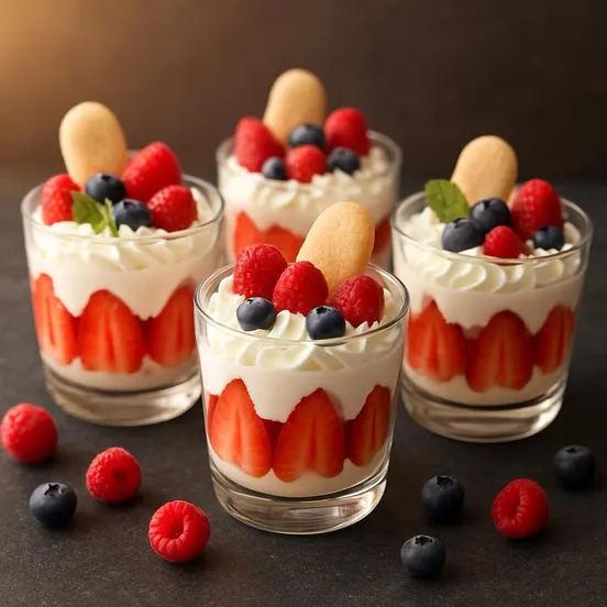 В стаканы или десертные чашки выложите слоями: сначала ягоды, затем сливочную смесь. Повторите слои по желанию.