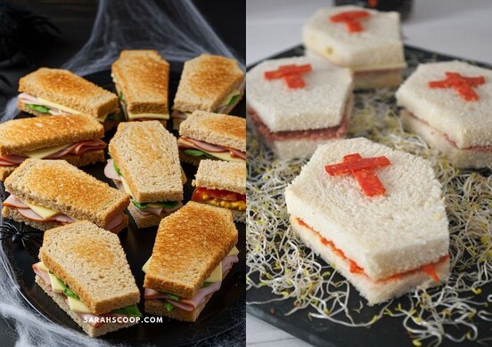Тут всё просто — обрезаешь хлеб в форме гроба и делаешь любые бутерброды.