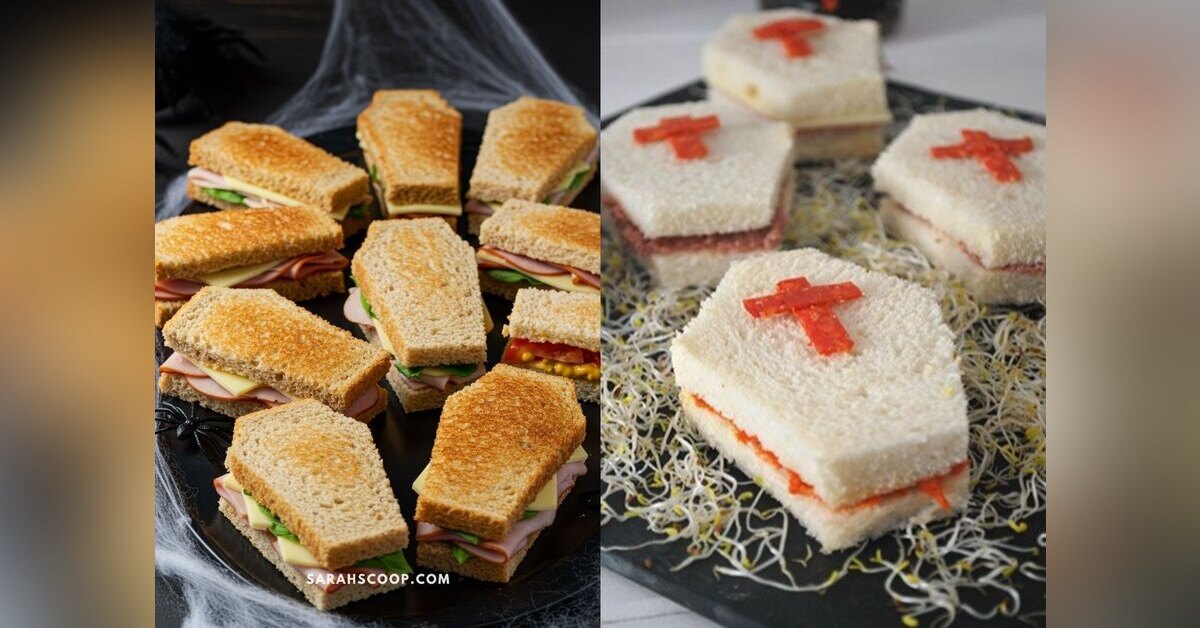 Тут всё просто — обрезаешь хлеб в форме гроба и делаешь любые бутерброды.